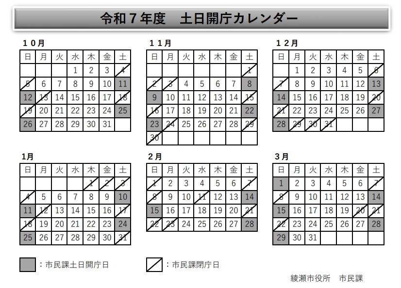 土曜日・日曜日の市民課窓口業務をご利用ください